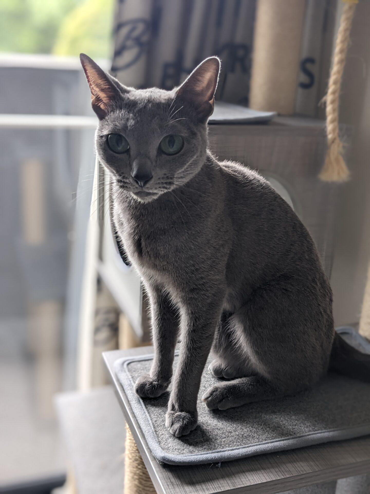 ロシアンブルーという猫種の猫と一緒に暮らしています。
